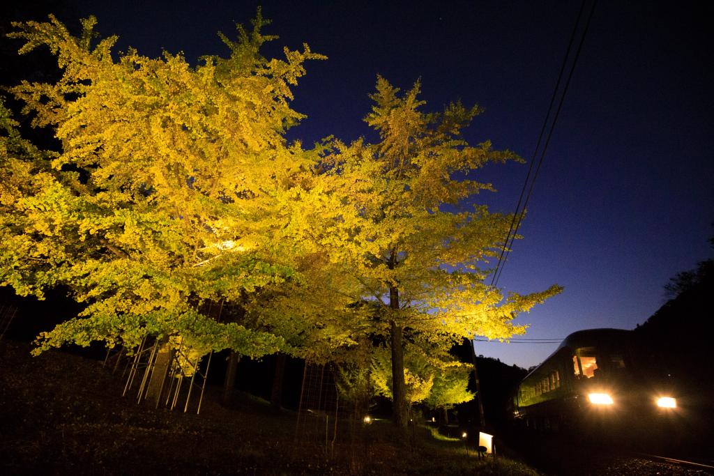 京都丹後鉄道線路沿いの銀杏がライトアップ イベント 2025.10.26 京丹後市網野町・引原峠の中央子午線塔のそばに立つ、樹齢50年以上の銀杏の木が25日㈯からライトアップされ、黄金色に輝きを放っている。 この大銀杏は京都丹後鉄道の線路沿いにあり、ライトアップされた木と列車が交差する瞬間を撮ろうと多くのカメラマンが訪れる人気の撮影スポット。 ライトアップは17時~23時30分頃まで。期間は11月末頃まで、落葉の状況により終了。 問い合わせは、夕日ヶ浦観光協会☎0772-74-9350へ。